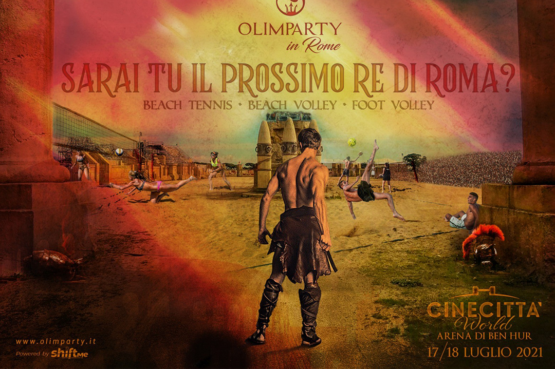 Nel weekend del 17 e 18 luglio 2021 l’Olimparty si trasferisce dalla città dello Stretto alla “Città Eterna”, nella spettacolare location dell’Arena di Ben-Hur di Cinecittà World, che sarà scenario suggestivo di 3 tornei di altissimo livello (beach volley, foot volley e beach tennis) tutto intervallato da momenti di divertimento assoluto sulla Cine-Piscina.